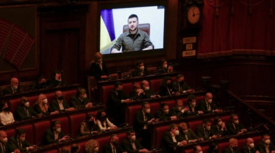 FX168财经报社(北美)讯 乌克兰总统泽连斯基周二(3月22日)通过视频连线在意大利议会上发表讲话时表示,需要加强对俄罗斯的制裁。他告诉意大利立法者,俄罗斯军队犯下了类似纳粹的罪行。