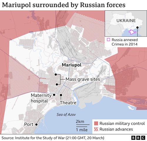 从地理上看,马里乌波尔市在地图上只占据了很小的一块区域,但它现在却顽固地阻挡着俄罗斯军队冲出克里米亚半岛。