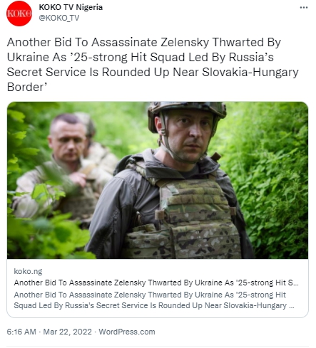 这次逮捕行动似乎只是针对乌克兰领导人的最新一次不成功的行动。自俄罗斯上个月开始入侵以来,已经有十几起暗杀行动。