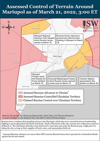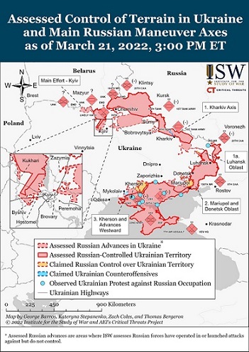 报道指出,美国国防部3月22日表示,俄罗斯军队仍因后勤困难而陷入困境,此情报与ISW所做出的评估相呼应。