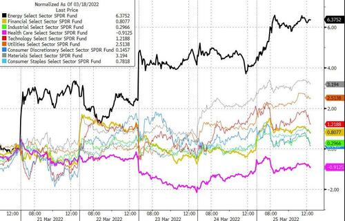 能源股本周表现强劲,医疗保健股表现滞后。金融类股温和上涨。
