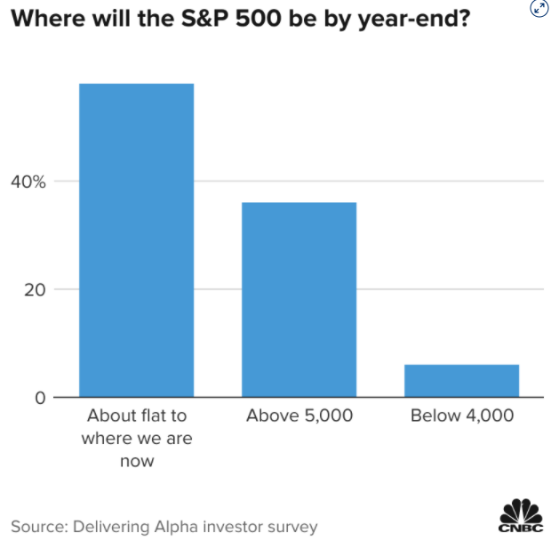只有6%的人认为年底前标普500指数会出现回调,跌破4000点。