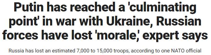 “大多数军事观察员和美国高级将领认为,俄罗斯军队达到了一个顶点。其中一个重要方面是他们所承受的损失。”