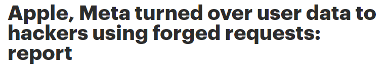 苹果、Meta向伪装成执法官员的黑客提供用户数据