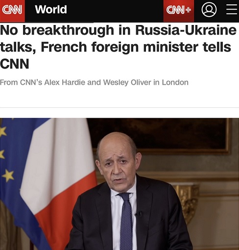 FX168财经报社(香港)讯 法国外长勒德里安(Jean-Yves Le Drian)周三(3月30日)表示,俄罗斯和乌克兰之间的谈判尚未取得突破。