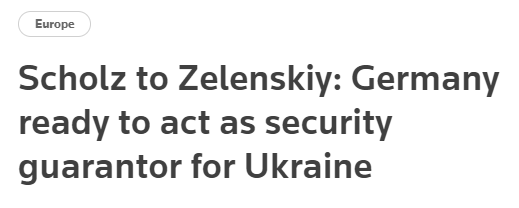 路透社报道,德国政府发言人赫伯施泰(Steffen Hebestreit)在当地时间30日的例行记者会中指出,肖尔茨与泽连斯基通电时表示,德国在扮演乌克兰安全保证国的角色上有意愿,但赫伯施泰不愿推论当中是否涉及军事成分。