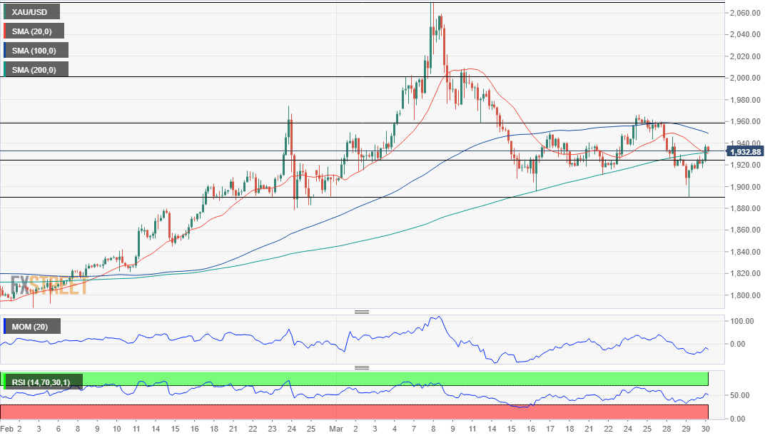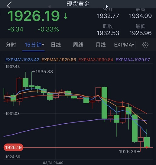 24K99讯 周四(3月31日)亚市早盘,现货黄金短线加速下跌,金价目前跌至1926美元/盎司附近,较日内高点回落约8美元。FXStreet首席分析师分析师Valeria Bednarik最新撰文,对金价技术前景进行分析。Bednarik支出,只要保持在1960美元/盎司区域下方,那么金价的看涨潜力就有限。
