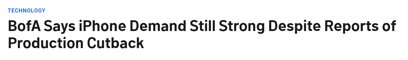 美国银行分析师发表最新报告显示,尽管最近日媒报道称,苹果公司削减iPhone 13与新款iPhone SE的产量,但该行认为iPhone的需求仍然强劲。报告内容提到,尽管这类报道可能会让一些投资人认为需求存在风险,但根据我们对iPhone以旧换新价格的分析,认为对iPhone的需求依然强劲。