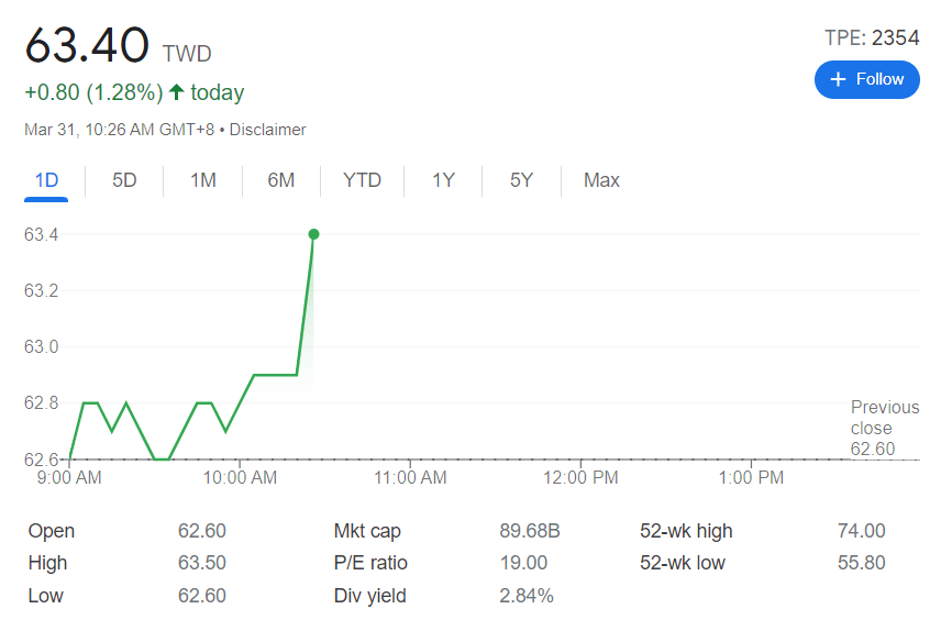 31日亚市早盘,富士康(鸿海)在台股股价出现一波短线拉升,涨幅1.28%,报在台币63.40元。