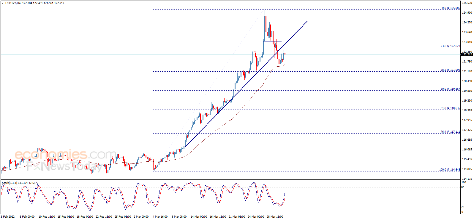 美元/日元昨日明显下跌并一度接近我们等待的目标价位121.10,但该货币对随后反弹,有望测试阻力位122.62。从4小时图来看,随机指标失去正面动能,等待这一因素推动美元/日元延续下跌走势,并测试下一主要目标121.10。
