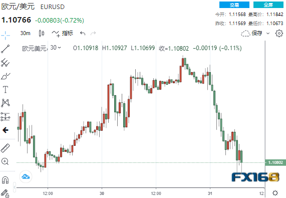 (欧元/美元30分钟走势图,图源:FX168)