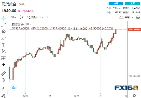 (现货黄金30分钟走势图,图源:FX168)