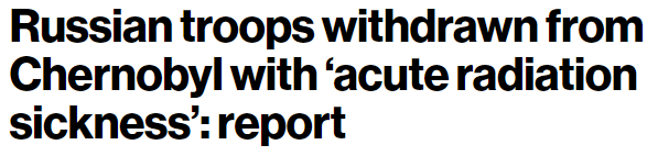 此外,乌克兰报告说,在切尔诺贝利核电站现场仍有一些俄罗斯部队,但推测这些部队正准备离开。