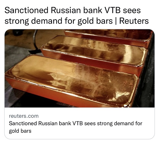 24K99讯 俄罗斯第二大银行——俄罗斯外贸银行(VTB)当地时间周三(3月30日)表示,该银行本月已向客户出售1吨黄金,预计需求将会增加。VTB因俄罗斯在乌克兰的入侵行动而受到西方制裁。