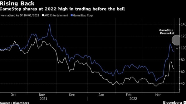 FX168财经报社(北美)讯 此前,电子游戏零售商游戏驿站(GME)公司宣布了拆股计划,周五(4月1日)该公司股价在美股开盘后一度上涨超13%,并且带动了其他Meme股上涨。