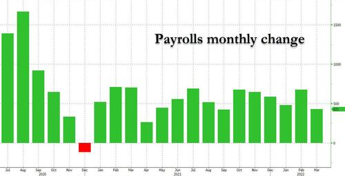 对黄金有利的是,薪资压力继续上升,加剧了通胀环境。报告称,3月份平均时薪上涨了13美分,至31.73美元,环比增长0.4%,同比则增长了5.6%。