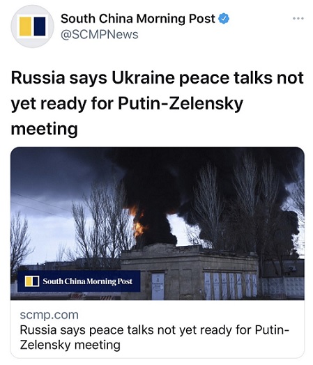 俄罗斯首席谈判代表梅金斯基(Vladimir Medinsky)在Telegram上表示:“协议草案还没有准备好提交给高层会议。我一再重申:俄罗斯在克里米亚和顿巴斯的立场没有改变。”