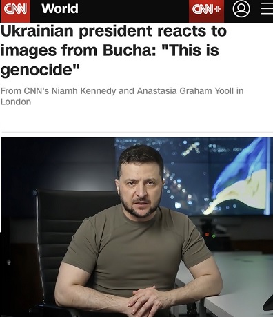 当泽连斯基在哥伦比亚广播公司(CBS)的《面对国家》(Face the Nation)节目中被问及俄罗斯是否在乌克兰实施种族灭绝时,他回答说:“确实如此。这就是种族灭绝。对整个国家和人民的灭绝。我们是乌克兰公民。我们有100多个民众。这是对所有这些民族的毁灭和灭绝”