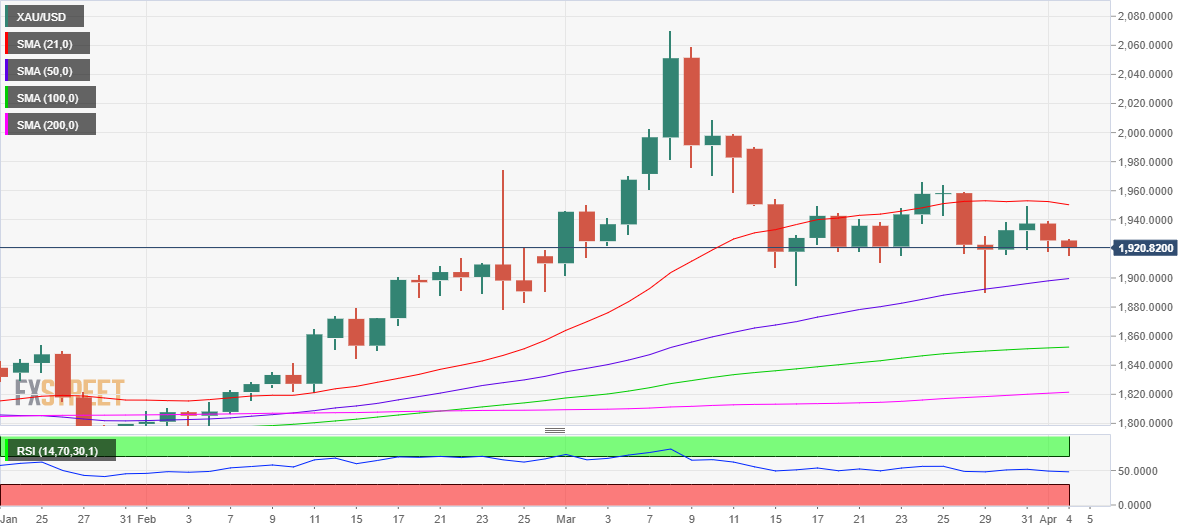 Mehta称,从黄金日线图来看,趋势转向有利于看跌交易员,因为14日相对强弱指数(RSI)已逐渐跌破中线,目前处于负值区间。在新一轮的抛售浪潮中,金价可能再度测试1915美元/盎司附近的四天低点,若跌破该水准,金价将继续下行,并向50日移动均线1900美元/盎司方向迈进。