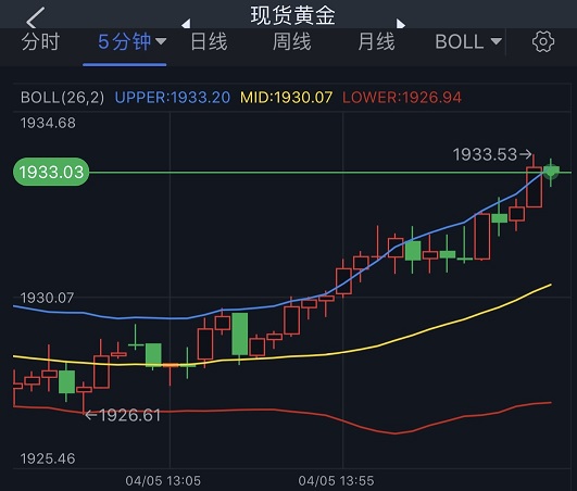 24K99讯 周二(4月5日)亚市尾盘,现货黄金短线快速上涨,金价目前最高触及1933.53美元/盎司。知名财经资讯网站Economies.com周二最新撰文,对日内黄金走势进行前瞻分析。