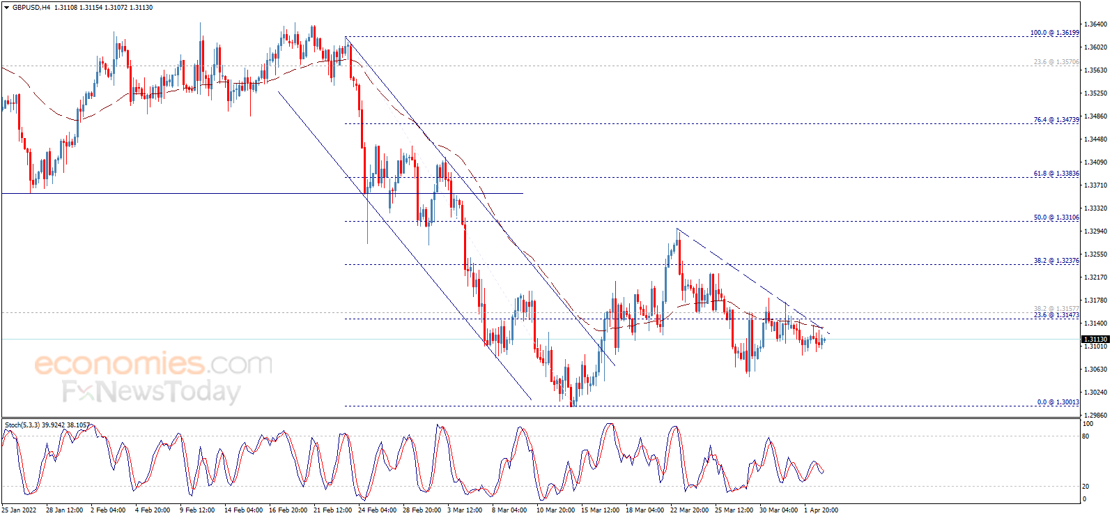 英镑/美元自昨日以来在盘整区间内波动,交投于1.3145下方,这令看空趋势情景在未来一段时间仍然有效。从4小时图来看,EMA 50指标施压英镑/美元,等待该货币对测试主要目标1.3000。