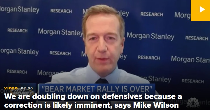 FX168财经报社(香港)讯 华尔街知名投行摩根士丹利(Morgan Stanley)警告称,近期市场的“熊市反弹”行情已经结束,接下来可能会出现相当猛烈的修正。