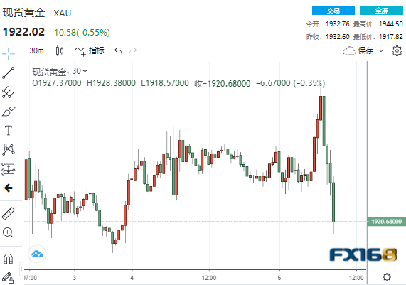 受布雷纳德鹰派言论影响,现货金短线加速下跌近27美元,刷新日低至1917.82美元。