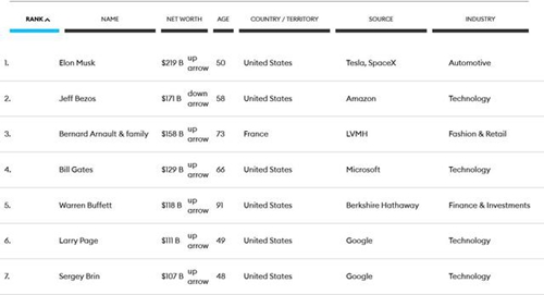 以下是福布斯2022全球亿万富豪榜前25位: