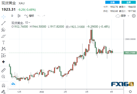 2.FXDailyReport撰文称,目前金价在1900 - 1950美元区间内交易,偏向于看涨。交易者将等待突破并收在区间外以确认下一个方向。如果金价继续走低,交易员可以利用1850美元和1800美元这两个水平建立多头头寸。