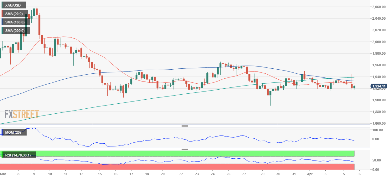 24K99讯 周三(4月6日)亚市盘中,现货黄金维持跌势,金价刚刚跌破1920美元/盎司关口。FXStreet首席分析师分析师Valeria Bednarik最新撰文,对金价技术前景进行分析。Bednarik指出,一旦跌破1915.40美元/盎司,金价可能会继续下跌。