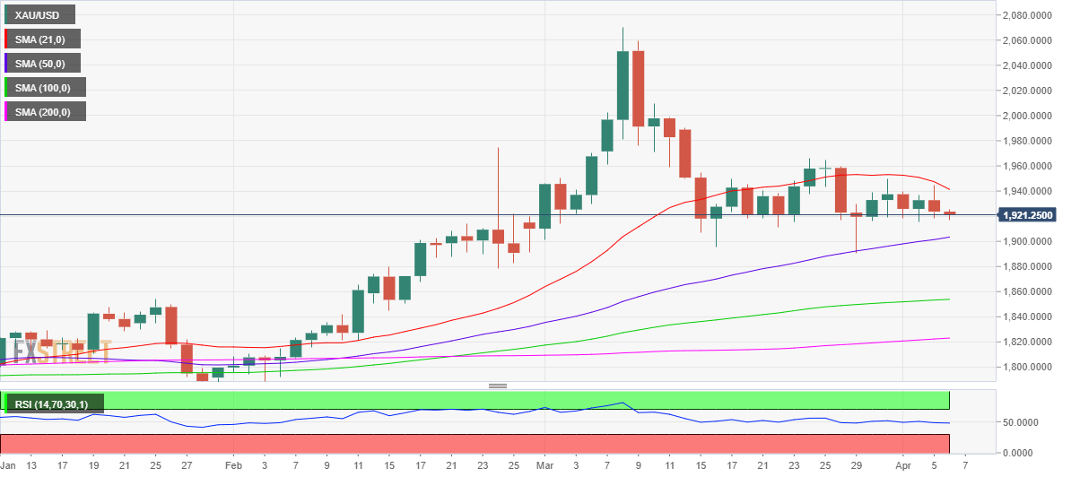 24K99讯 周三(4月6日)欧市早盘,现货黄金短线快速上涨,金价自日内低点反弹近10美元。知名财经网站FXStreet分析师Dhwani Mehta周三最新撰文,对金价技术前景进行分析。尽管金价短线反弹,但Mehta认为,金价后市仍可能测试50日移动均线1903美元/盎司。目前投资者关注美联储会议纪要。
