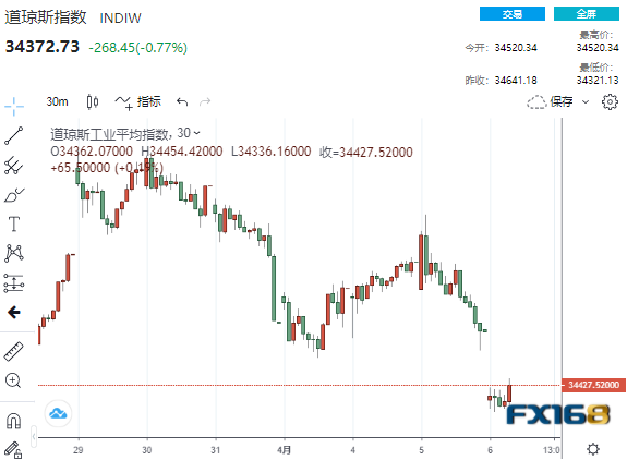 (道指30分钟走势图,来源:FX168)