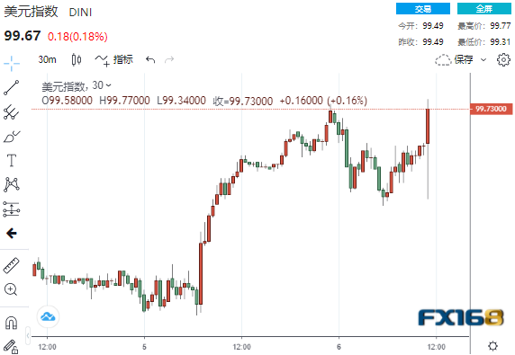 (美指30分钟走势图,来源:FX168)