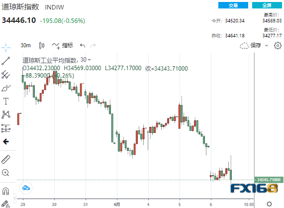 (道指30分钟走势图,来源:FX168)