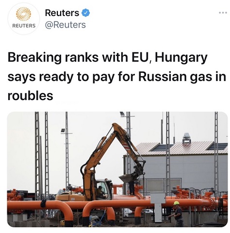 FX168财经报社(香港)讯 匈牙利周三(4月6日)表示,准备向俄罗斯支付卢布购买天然气,此举打破了欧盟的立场。欧盟一直在寻求统一战线,反对莫斯科方面要求用卢布支付天然气。