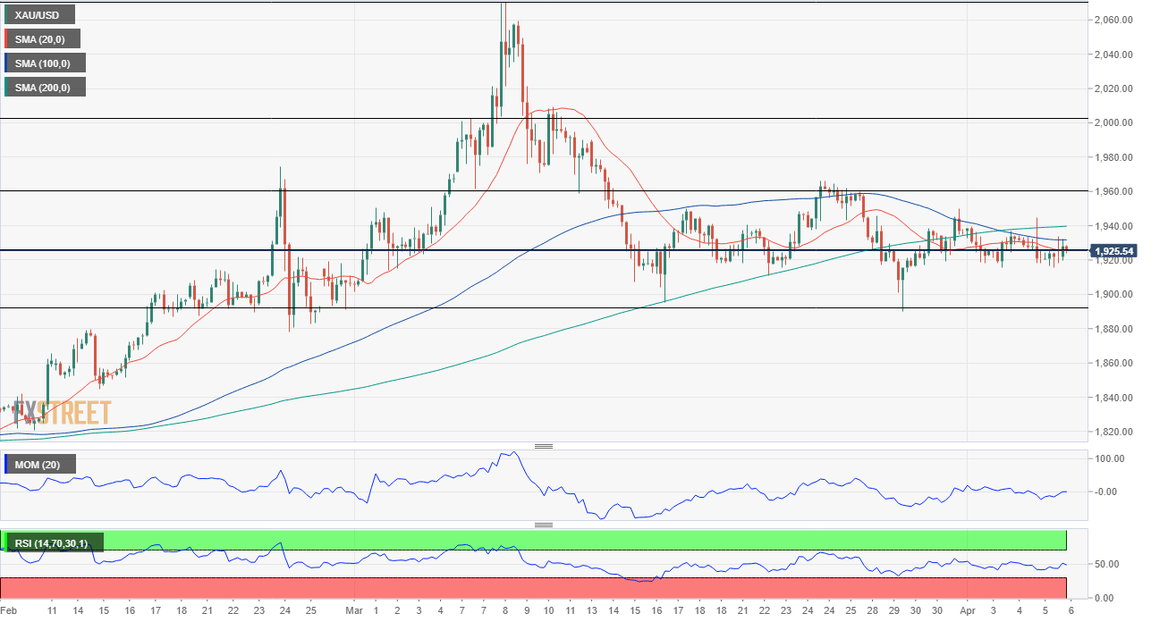 24K99讯 周四(4月7日)亚市盘中,现货黄金短线波动较为剧烈,金价在触及日内低点后持续反弹,金价刚刚突破1925美元/盎司,此前金价一度跌至1920.96美元/盎司。FXStreet首席分析师分析师Valeria Bednarik最新撰文,对金价技术前景进行分析。Bednarik指出,黄金技术面中性,多头可能在金价跌破1890.00美元/盎司后失去信心。