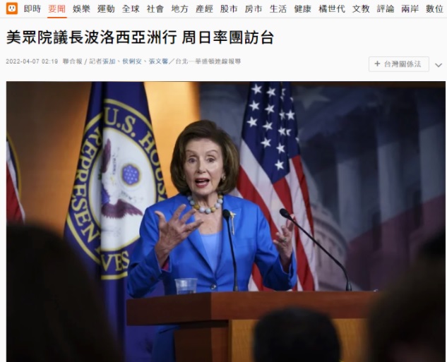 《联合报》援引日本共同社报道称,美日官方消息人士4月6日透露,佩洛西将在4月8日访问日本,预定4月10日和日本首相岸田文雄会面。在佩洛西这趟亚洲行的“访问团”成员中,传出去年表达有意访台的美国众议院外交委员会主席格雷戈里·米克斯也可望随行。