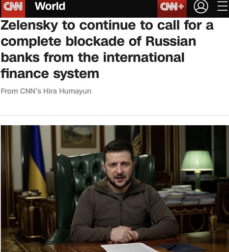 FX168财经报社(香港)讯 乌克兰总统泽连斯基(Volodymyr Zelensky)表示,他将呼吁将俄罗斯银行完全封锁在国际银行体系之外。他并警告称,俄罗斯将在顿巴斯发起“血腥攻击”。