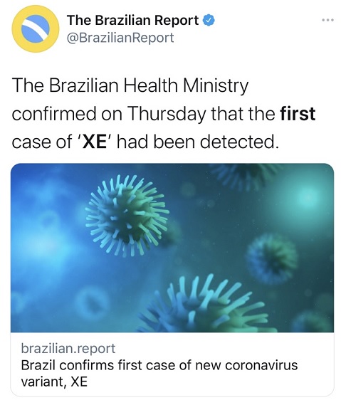 FX168财经报社(香港)讯 在新冠大流行期间,重组毒株的出现并不罕见,目前新冠重组毒株XE正在全球快速蔓延,巴西、英国、香港、台湾、印度等地区都发现XE毒株,且XE的传播速度比奥密克戎(Omicron)亚型变异株BA.2快10倍。