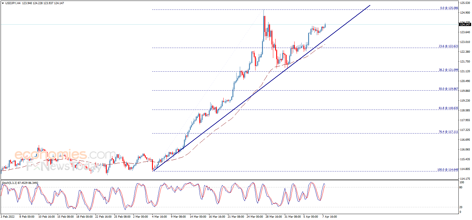 从4小时图来看,EMA 50指标支持美元/日元看涨走势。除非美元/日元跌破122.62并维持在这一水平下方,否则看涨预期仍将有效。
