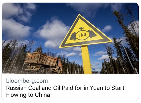 彭博援引山西汾渭能源信息服务有限公司(Fenwei Energy Information Service Co.)的消息报道称,3月份有几家中国公司使用人民币购买了俄罗斯煤炭,首批煤炭将于本月抵达中国。