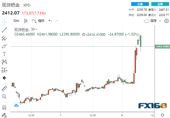 (现货钯金30分钟走势图,来源:24K99)