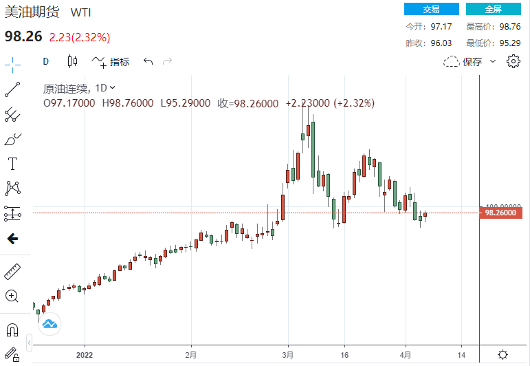 截至发稿,美国WTI原油期货上行0.76美元,涨幅0.79%,现报97.76美元/桶;布伦特原油期货上探0.94美元,涨幅0.93%,报102.32美元/桶。本周,布伦特原油下跌1.5%,而WTI下跌 1%,几周以来,两种基准原油期货一直处于自 2020年6月以来的最大波动状态。