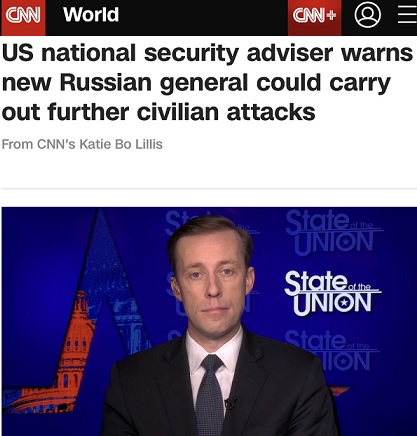 沙利文在接受CNN采访时说道:“这位将军的履历包括在叙利亚的其他战场上对平民的暴行,我们可以预见在这个战场上发生更多类似的事情。这位将军将是对乌克兰平民犯下罪行和暴行的又一个人。”