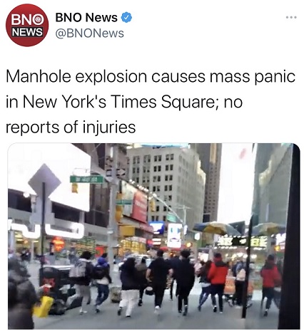 据美国福克斯新闻报道,当地时间4月10日晚,在纽约时代广场附近多个下水道井口起火,并发出巨大爆炸声。当时广场附近不知情的人们争先恐后地向外逃跑。