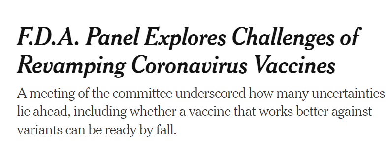 美国FDA委员会成员奥菲特医生(Paul Offit)表示,应由美国CDC负责来判定,疫苗何时开始对预防重症无效时,美国FDA才能与疫苗厂商合作并确保更新疫苗的研发是在正确的方向。他说:“你经常听到药厂宣布,像是他们有对抗Omicron的疫苗;但这不应该由他们来主导,而是我们。”