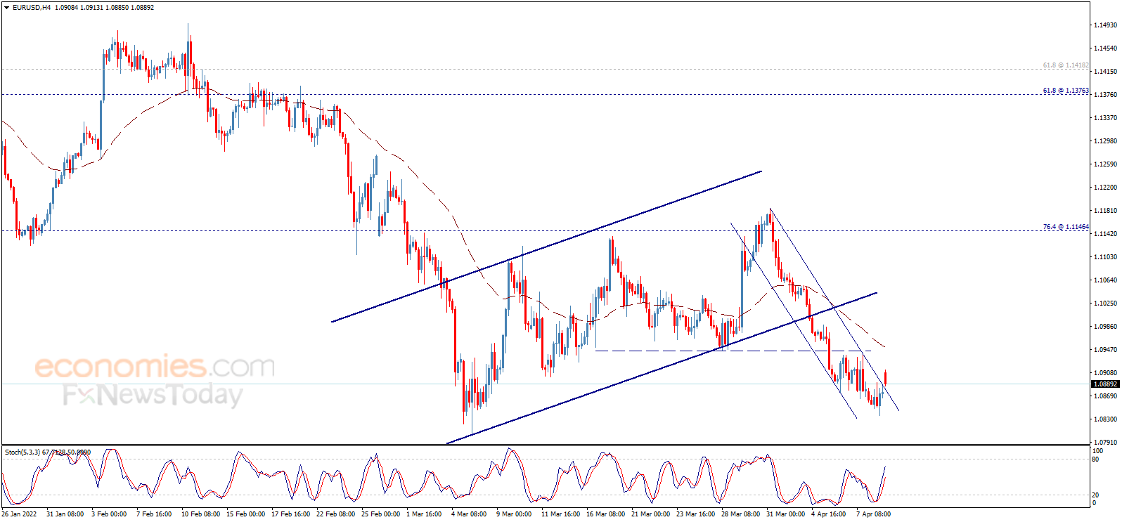 欧元/美元开始今日交易后上涨,并突破看空通道阻力,但我们注意到,EMA 50指标继续施压欧元/美元,而随机指标明显失去正面动能。