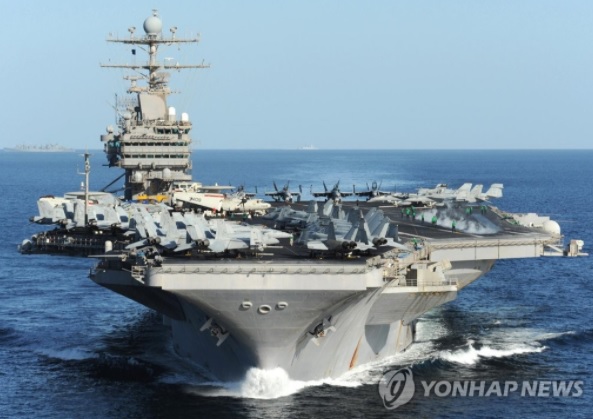 (美国海军“亚伯拉罕·林肯”号核动力航空母舰 截图来源:韩联社)