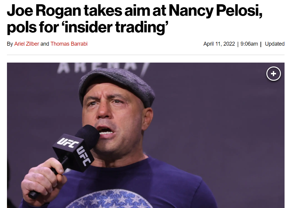 美国知名评论员乔·罗根(Joe Rogan)瞄准佩洛西和其他国会议员,因为他们被允许拥有股票期权,尽管他们能够监管他们从中获利的行业。他在播客中提到:“他们知道将要实施的法律,佩洛西的丈夫、风险投资家保罗·佩洛西(Paul Pelosi)拥有超过250万美元的特斯拉股票。”