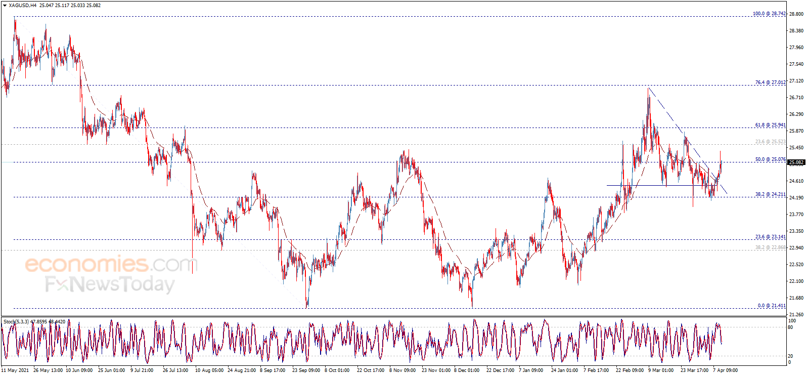 24K99讯 周二(4月12日)欧市早盘,现货白银维持升势,现报25.20美元/盎司附近。知名财经资讯网站Economies.com周二最新撰文,对日内白银走势进行前瞻分析。